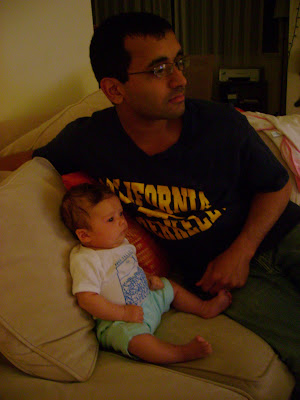 During the last couple of weeks Anjali has started grabbing at things - including taking fistfuls of mommy's hair in a vice-like grip - and laughing at things like daddy's dancing (who wouldn't?). She has also started tentatively enjoying bathtime, and sometimes sleeps through the night!